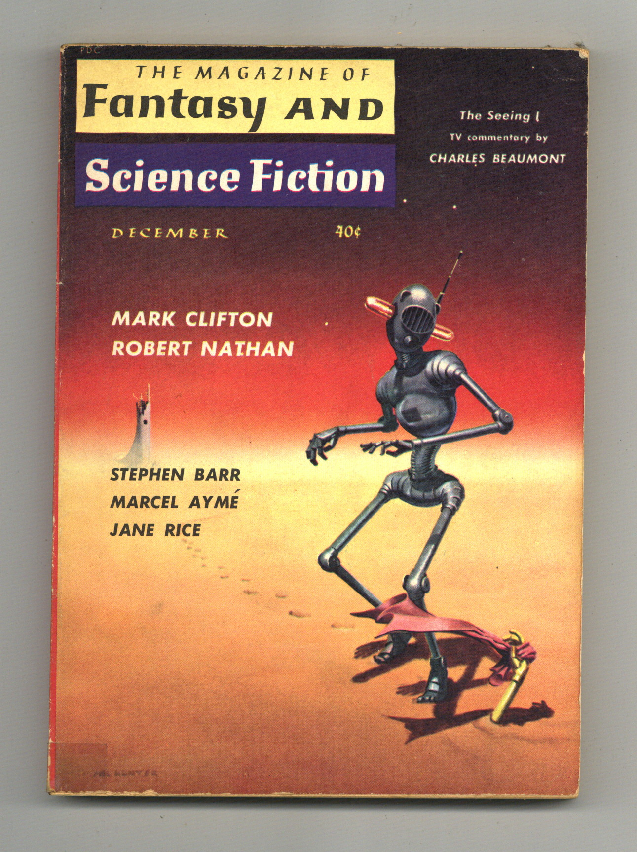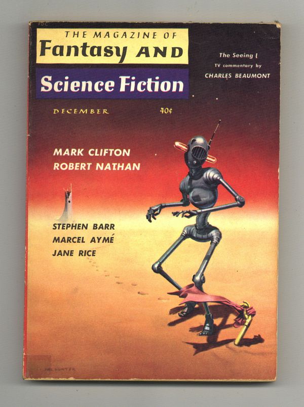 Published Dec 1959 by Mercury Publications.$3.60Volume 17, Issue 6 - December 1959. Cover by Mel Hunter. Fantasy and science fiction stories by Mark Clifton, Gerard E. Neyroud, Marcel Ayme, Stephen Barr, Jane Rice, Grendel Briarton, Damon Knight, Charles Beaumont and Robert Nathan. Science article by Isaac Asimov. Softcover. 5.5-in. x 7.5-in. 130 pages, Text. Cover price $0.40.