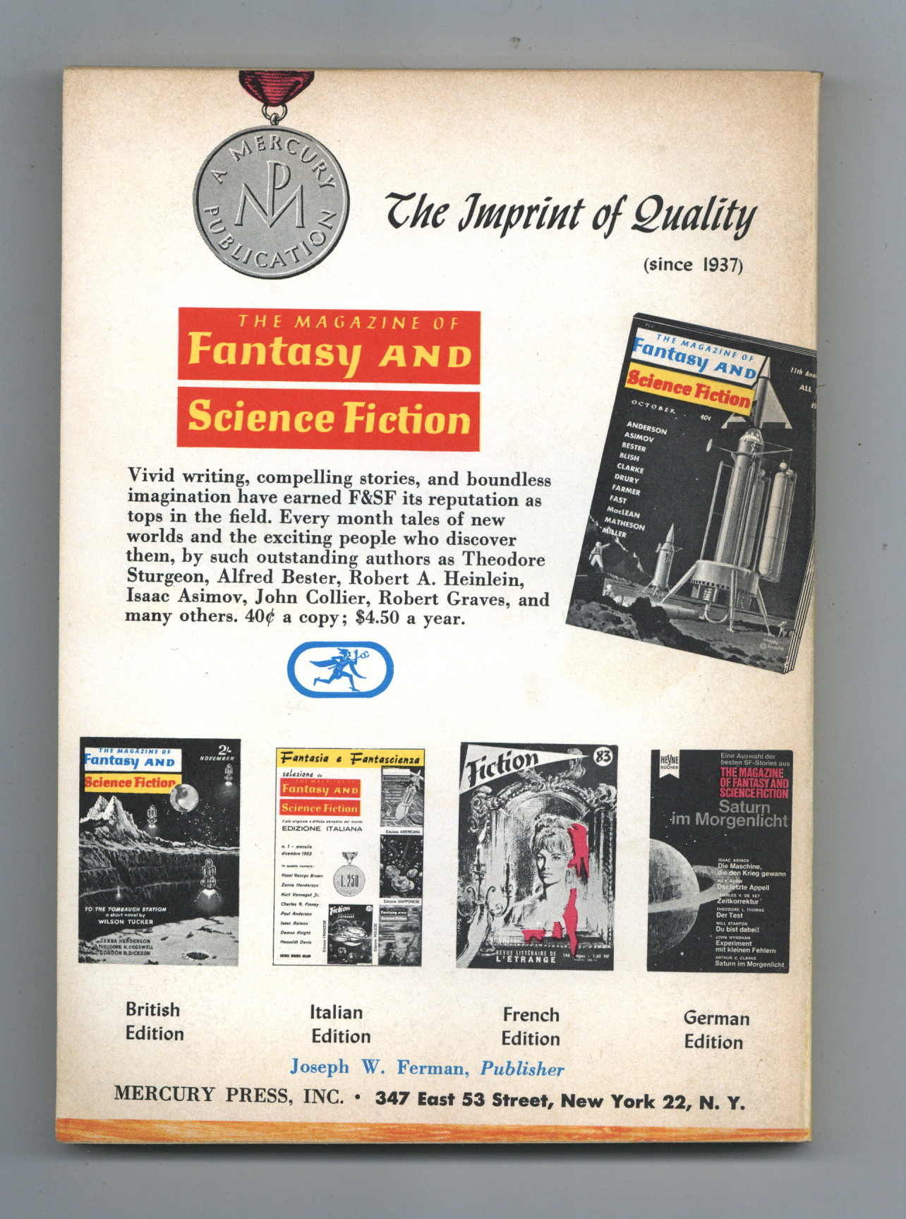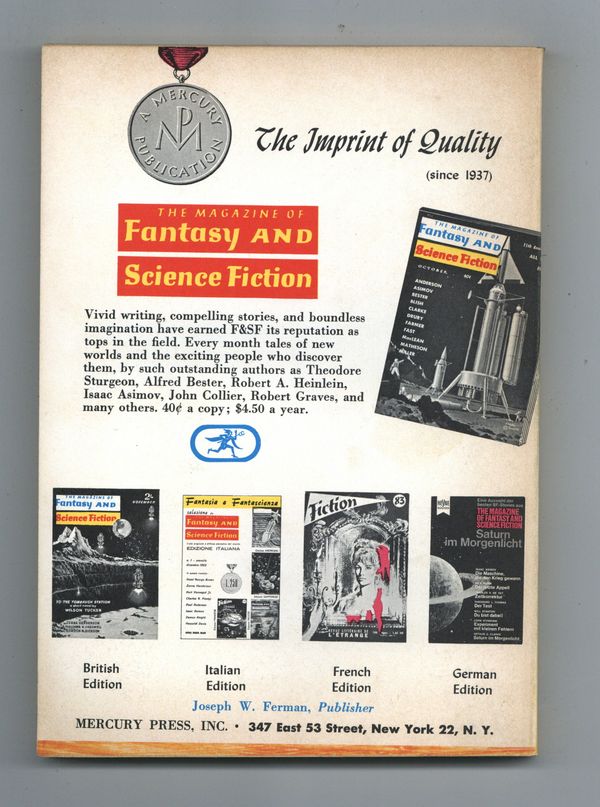 Published Apr 1964 by Mercury Publications.$15.00Volume 26 , Issue 4 - April 1964. Science fiction stories by Isaac Asimov, Alan E. Nourse, Ron Goulart, and B. Traven. Cover by Jack Gaughan/ Softcover, 5 1/2-in. x 7 1/2-in.,130 pages, B&W. Cover price $0.40.
