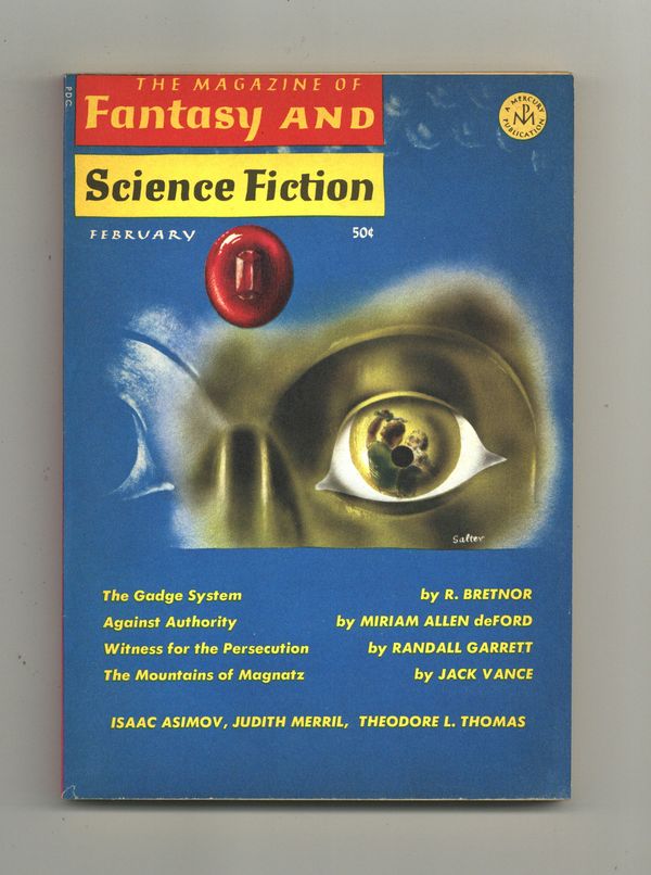 Volume 30, Issue 2 - February 1966. Cover by George Salter. Fantasy and Science fiction stories by R. Bretnor, Miriam Allen deFord, Randall Garrett, Jack Vance, Isaac Asimov, Judith Merril, and Theodore L. Thomas. Softcover, 5 1/2-in. x 7 1/2-in., 130 pages, B&W Cover price $0.50.