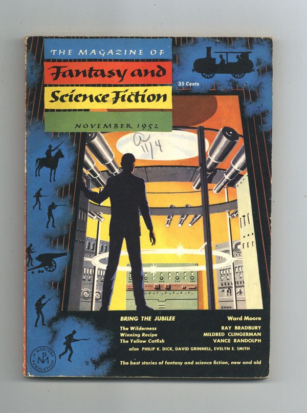 Tags: Anthology / CollectionPublished Nov 1952 by Mercury Publications.$9.00November 1952. Cover by Ed Emshwiller. Fantasy and science fiction stories by Philip K. Dick, Mildred Clingerman, Donald A. Wollheim (as David Grinnel), Evelyn E. Smith, Ward Moore, Charles T. Webb, Vance Randolph, and Ray Bradbury. Softcover. 5.5-in. x 7.5-in. 132 pages, black and white (all text). Cover price $0.35.