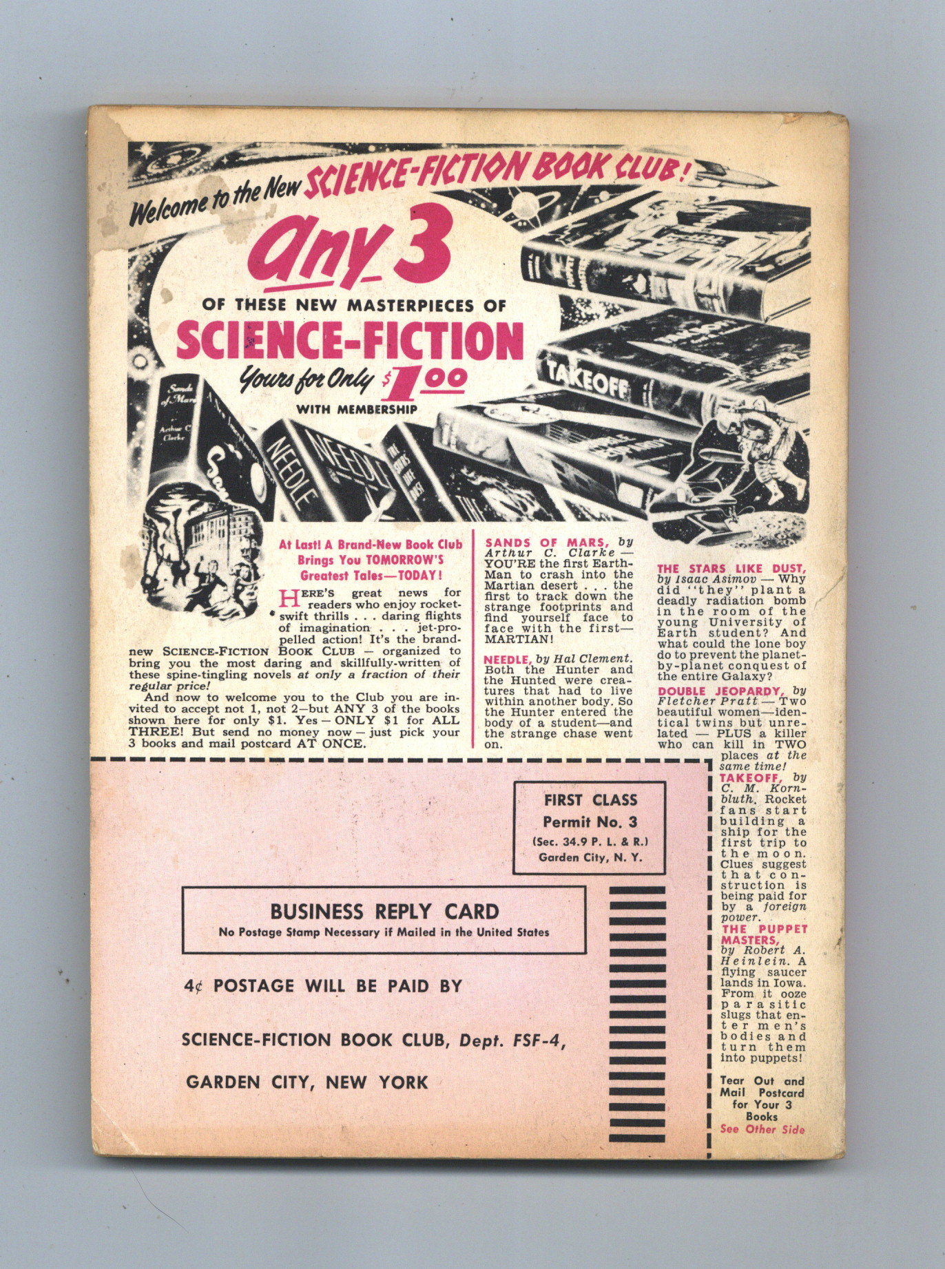 Tags: Anthology / CollectionPublished Apr 1953 by Mercury Publications.$14.25- Water damage: Slight. Staple rust: Slight.