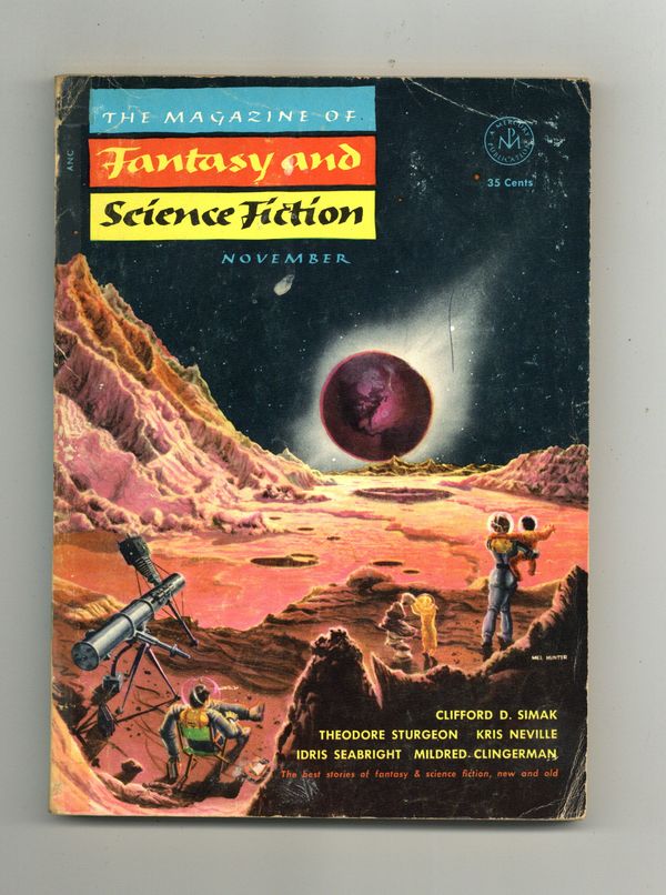 Tags: Anthology / CollectionPublished Nov 1953 by Mercury Publications.$5.00November 1953. Cover by Mel Hunter. Fantasy and science fiction stories by Clifford D. Simak, Robert Abernathy, Margaret St. Clair (as Idris Seabright), Mindret Lord, Stewart Royce, Vance Randolph, Kris Neville, Randall Garrett, Cleve Cartmill, Theodore Sturgeon, and Mildred Clingerman. Softcover. 5.5-in. x 7.5-in. 132 pages, black and white (all text). Cover price $0.35.