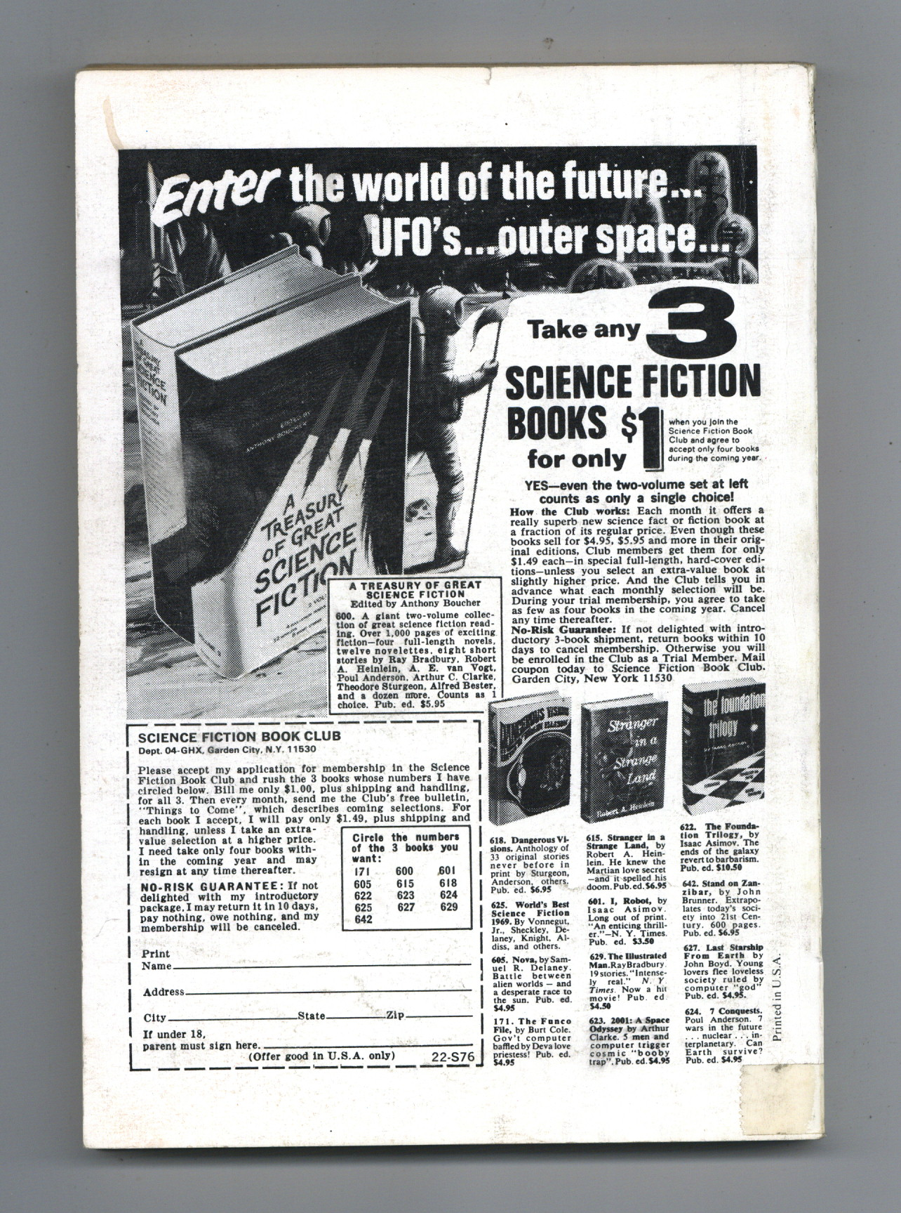 Published Apr 1970 by Galaxy Publications.$3.20April 1970.5-1/4-in. x 7-1/4-in.; b&w text with spot illustrations; 160 newsprint pages. Cover price $0.60.