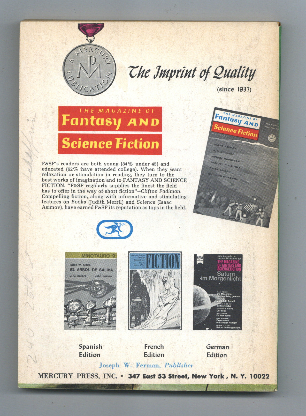 Tags: Anthology / CollectionPublished Jul 1968 by Mercury Publications.$2.50