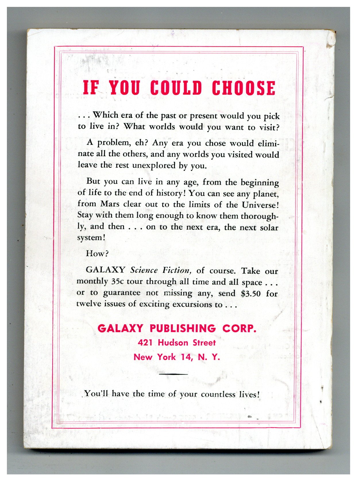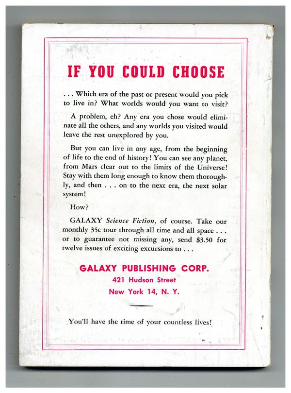 Published Nov 1951 by Galaxy Publications.$18.75- Back cover detached 5%. Staple rust: Slight.
