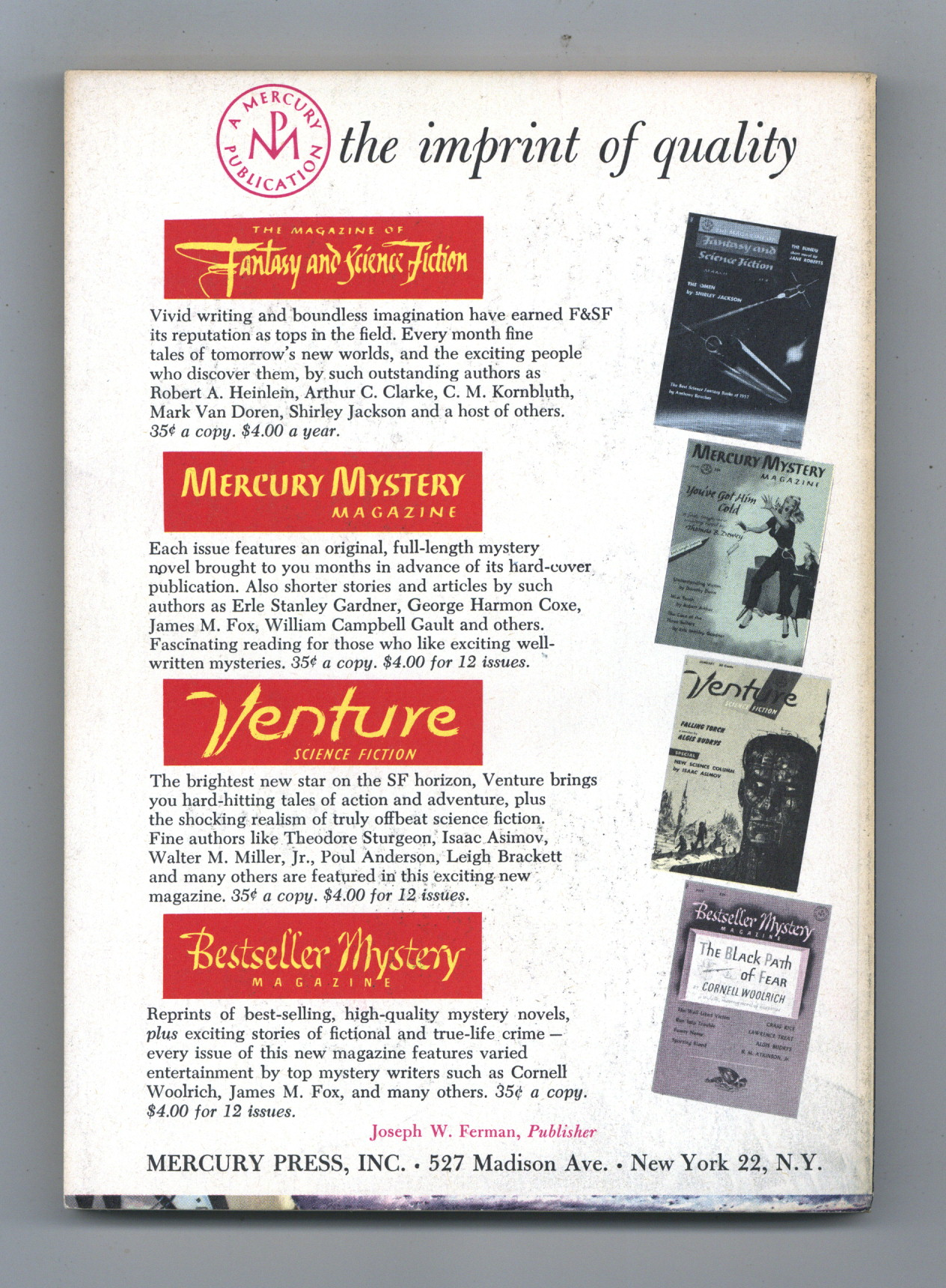 Published Jul 1958 by Fantasy House.$28.00Vol. 2, No. 4 - July , 1958. 5.25" x 7.25", 130 pages, B&W. Cover price $0.35.