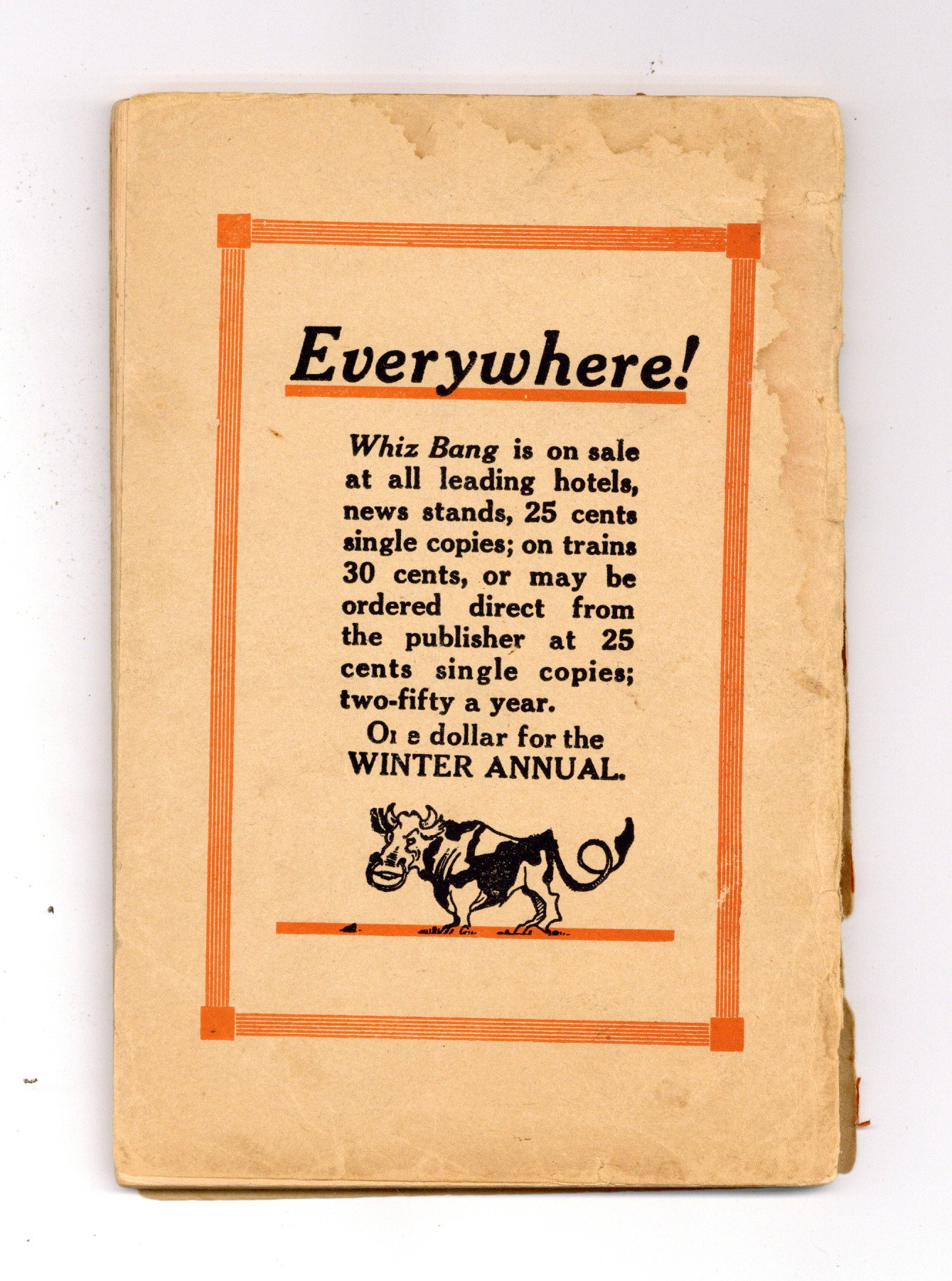 Captain Billy's Whiz Bang was one of the most popular and notorious humor magazines of the 1920s. Contains jokes and humorous stories. 5" x 7.5", 64 pages, B&W. Cover price $0.25.