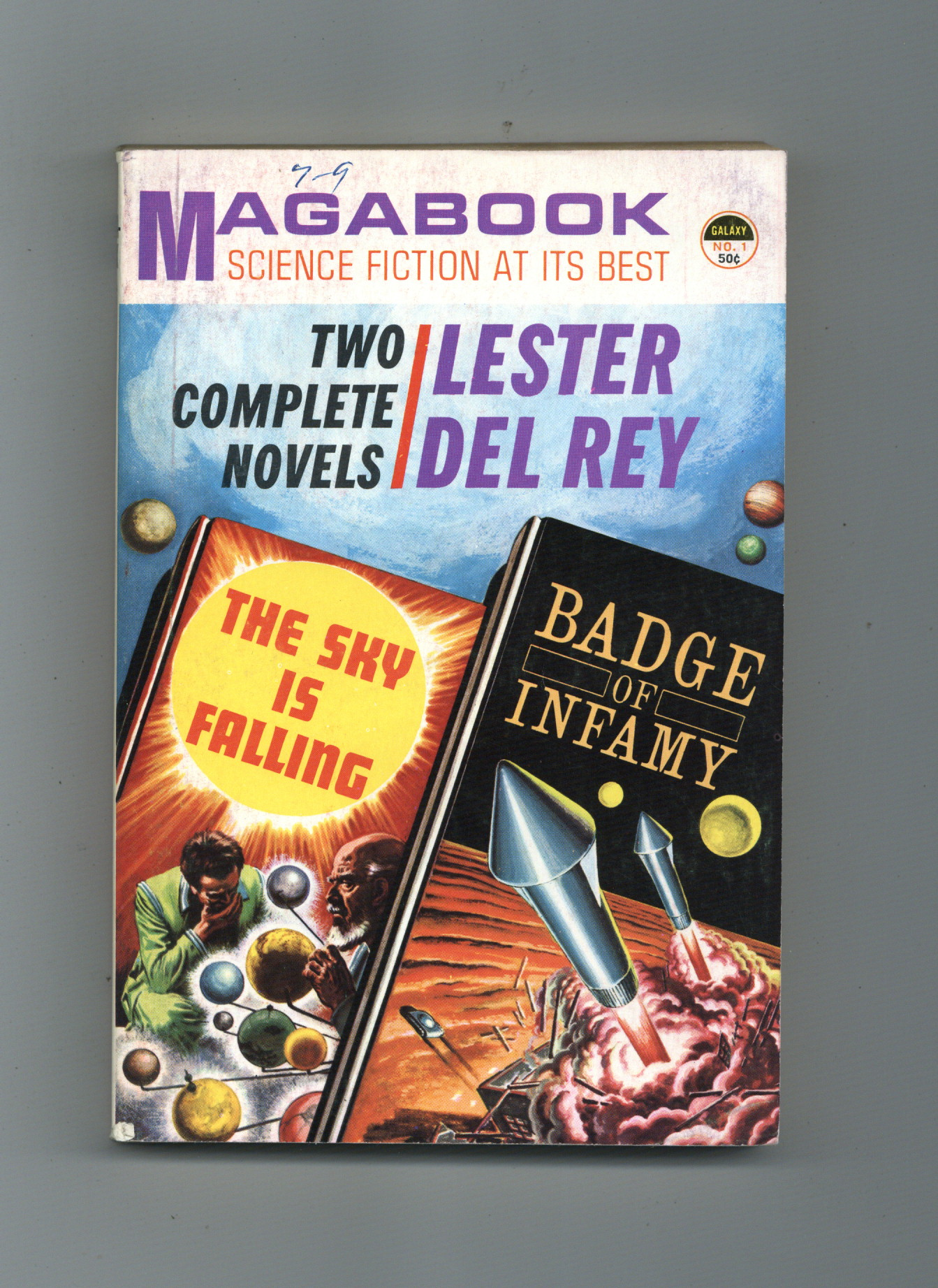 Published 1963 by Galaxy Publishing.$12.00Issue 1 - Two Complete Novels. "The Sky is Falling", and "Badge of Infamy" both written by Lester Del Rey. Softcover, 5" x 7.5", 160 pages, B&W, text only. Cover price $0.50.