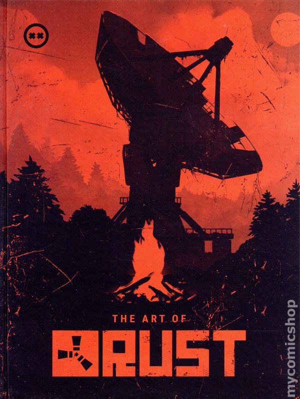 1st printing. Text by Facepunch Studios. A skillfully designed, full color art book showcasing all the elements and the artistic evolution of the genre defining, survival-shooter game Rust! THE ART OF RUST illuminates the development and concept art behind the unique survival video game RUST - a game where everything wants you to die-the island's wildlife, other inhabitants, the environment, and other survivors. Examine the inventive costume designs and unique characters, experience the expansive and harsh environments, and dive into the details of the improvised weapons, base props, and vehicles of RUST. Hardcover, 9-in. x 12-in., 184 pages, full color. Cover price $54.99.