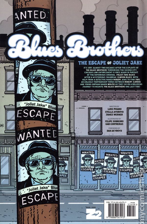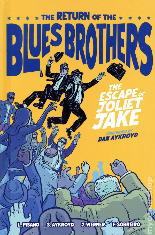1st printing. Written by Luke Pisano, Stella Aykroyd, and James Werner. Art and cover by Felipe Sobreiro. The Blues Brothers - The Escape of Joliet Jake: Its 1997, almost two decades after the events in THE BLUES BROTHERS film and Chicago law enforcement is once again in pursuit of the notorious musical criminal, Jake Blues, after a mysterious jailbreak. On the case is Robert, an up and coming detective, whose world is turned upside down… While investigating, Robert receives a little help from Elwood Blues, and an unlikely partnership forms between Robert and Wolfie, an orphan from the Blues Brothers alma mater, St. Helens of the Blessed Shroud. Together, they unravel a web of mysteries tied to Blues Brothers adventures with Jake and Elwood that weve never seen before! Get back to the heart of recidivist mischief, soul and bombastic chases. Sink your teeth into a new Blues Brothers adventure. Hardcover, 136 pages, full color. Cover price $34.99.