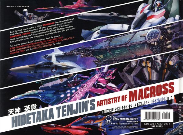Volume 1 - 1st printing. "From Flash Back 2012 to Macross Frontier!" Since its small screen debut in 1982, Macross has remained one of most influential mecha anime of all time. Longtime franchise illustrator Hidetaka Tenjin captures the high-flying action of the series iconic variable fighters like no other artist through his hyper-realistic illustrations for model kits, magazines, promotional materials, and more. This volume gathers Tenjins illustrations from the eras of Super Dimension Fortress Macross: Flash Back 2012, Super Dimension Fortress Macross II, Macross Plus, Macross 7, Macross Zero, and the Macross Frontier TV series. Hardcover, 11 1/2-in. x 8 1/2-in., 144 pages, full color. Cover price $49.99.