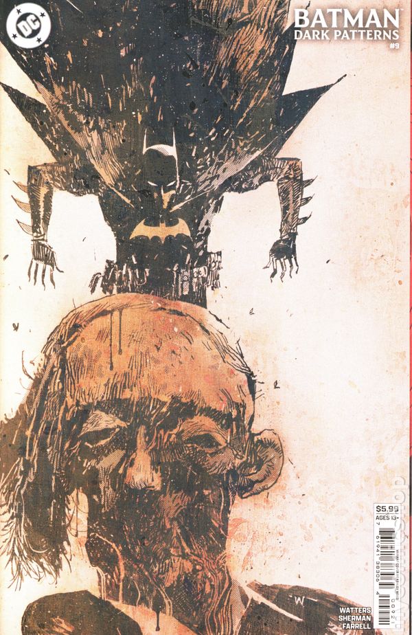 (W) Dan Watters (A) Hayden Sherman (CA) Ashley Wood THE FINAL ISSUE OF THE EPIC SERIES BY DAN WATTERS AND HAYDEN SHERMAN! Batman: Dark Patterns reaches its fiery conclusion! Can the Dark Knight Detective quell the hungry flames threatening to erase Gotham before the city is no more, or will the Child of Fires inferno devour it all? 32 pages, full color, rated 13+. Cover price $5.99.