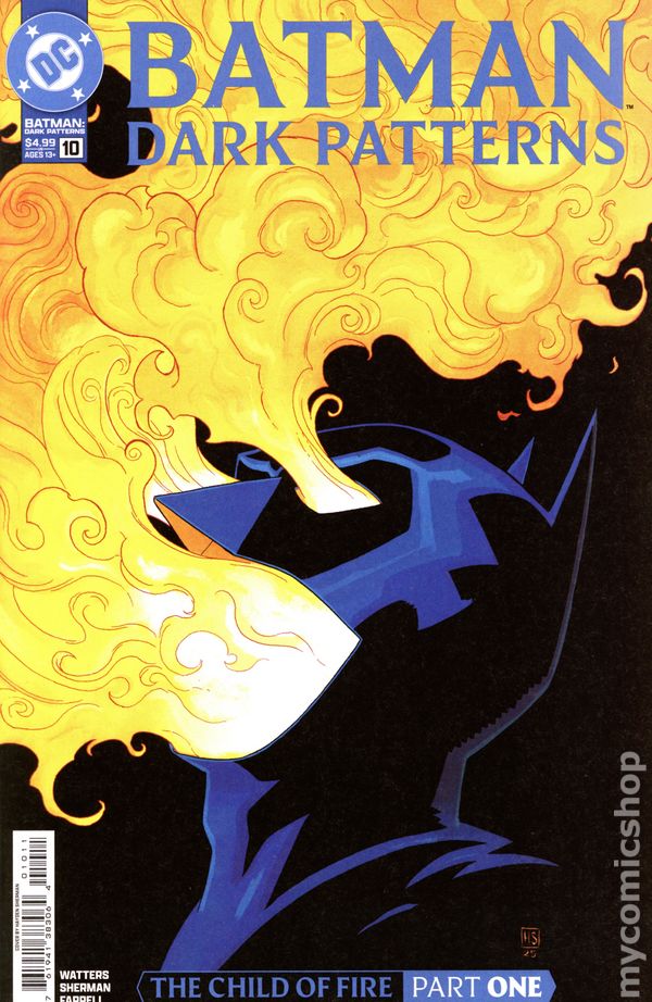 Written by Dan Watters. Art by Hayden Sherman. Cover by Hayden Sherman. THE FINAL DARK PATTERNS CASE BEGINS AS GOTHAM BURNS! CASE 04: Child of Fire A mysterious arsonist has been secretly guiding the growth of Gotham and Batman from the shadows...now their dark design enters its final stage. Will this grand work be a success, or will the world's greatest detective douse the blazing plot before it's too late? 28 pages, full color. Rated T+ Cover price $4.99.