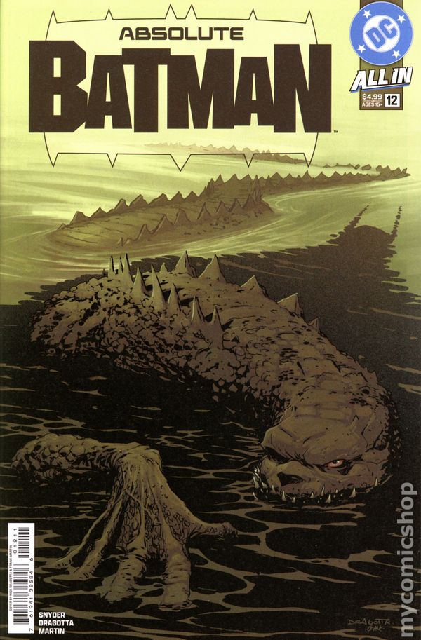 (W) Scott Snyder (A) Nick Dragotta (CA) Nick Dragotta ABSOLUTE BATMAN IN HELL! Part two of our Absolute Batman/Absolute Wonder Woman story-- Bruce Wayne is on a desperate hunt to help his friend Waylon, now transformed into a monstrous crocodile roaming the sewers, consumed with a deadly hunger. Batman's last option for a cure is to turn to a god for help...but will he have to descend into the depths of hell to get it? Cover price $4.99.