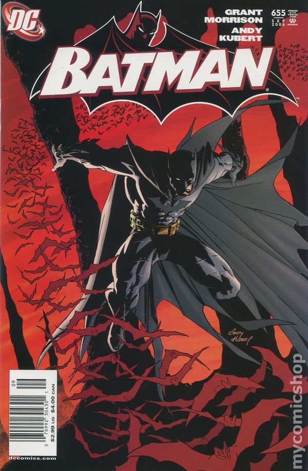 Direct Edition. Written by Grant Morrison. Art and cover by Andy Kubert. Variant cover by Adam Kubert. Comic legends Grant Morrison (ALL STAR SUPERMAN, SEVEN SOLDIERS) and Andy Kubert (Ultimate X-Men, 1602) come together for Part 1 of "Batman and Son." After a harrowing battle with the Joker high atop Police Headquarters, Batman decides to let Bruce Wayne step into the light. But just who is watching billionaire Bruce Wayne? And what does their plan have to do with Man-Bat? 36 Pages, Full Color. Cover price $2.99.