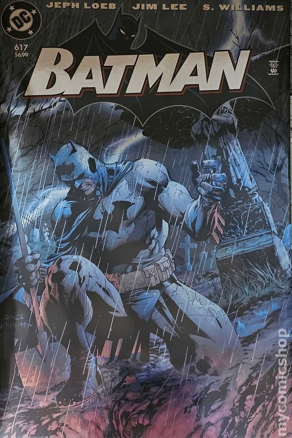 Written by Jeph Loeb. Art by Jim Lee, Scott Williams. Cover by Jim Lee, Scott Williams. The shock of the Joker's latest apparent victim sends the Dark Knight careening down a path that can only end one way: the death of the Joker by Batman's own hands. With Batman finally giving in to his need to end the menace of his most hated enemy once and for all, can anyone pull him back from the brink before it's too late? 32 pages, full color. Rated T+ Cover price $3.99.