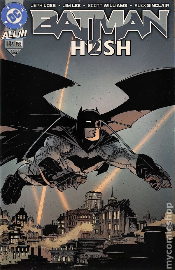 Written by Jeph Loeb. Art by Jim Lee, Scott Williams. Cover by Jim Lee, Scott Williams. THE HOTLY ANTICIPATED SEQUEL TO THE SMASH-HIT STORYLINE! Jeph Loeb! Jim Lee! An all-new epic saga begins here. Hush returns! 40 pages, full color. Rated T+ Cover price $5.99.