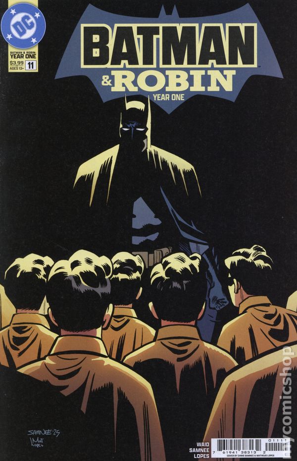 Written by Mark Waid, Chris Samnee. Art by Chris Samnee. Cover by Chris Samnee. WAID AND SAMNEE'S EPIC EXPLORATION OF THE DYNAMIC DUO'S EARLIEST ADVENTURES NEARS ITS EPIC FINALE! Batman and Robin have their backs against the wall as Project Gemini goes into full effect! Can the dynamic duo figure out the General's plan, or will Gotham be lost to them forever?! 28 pages, full color. Rated T+ Cover price $3.99.