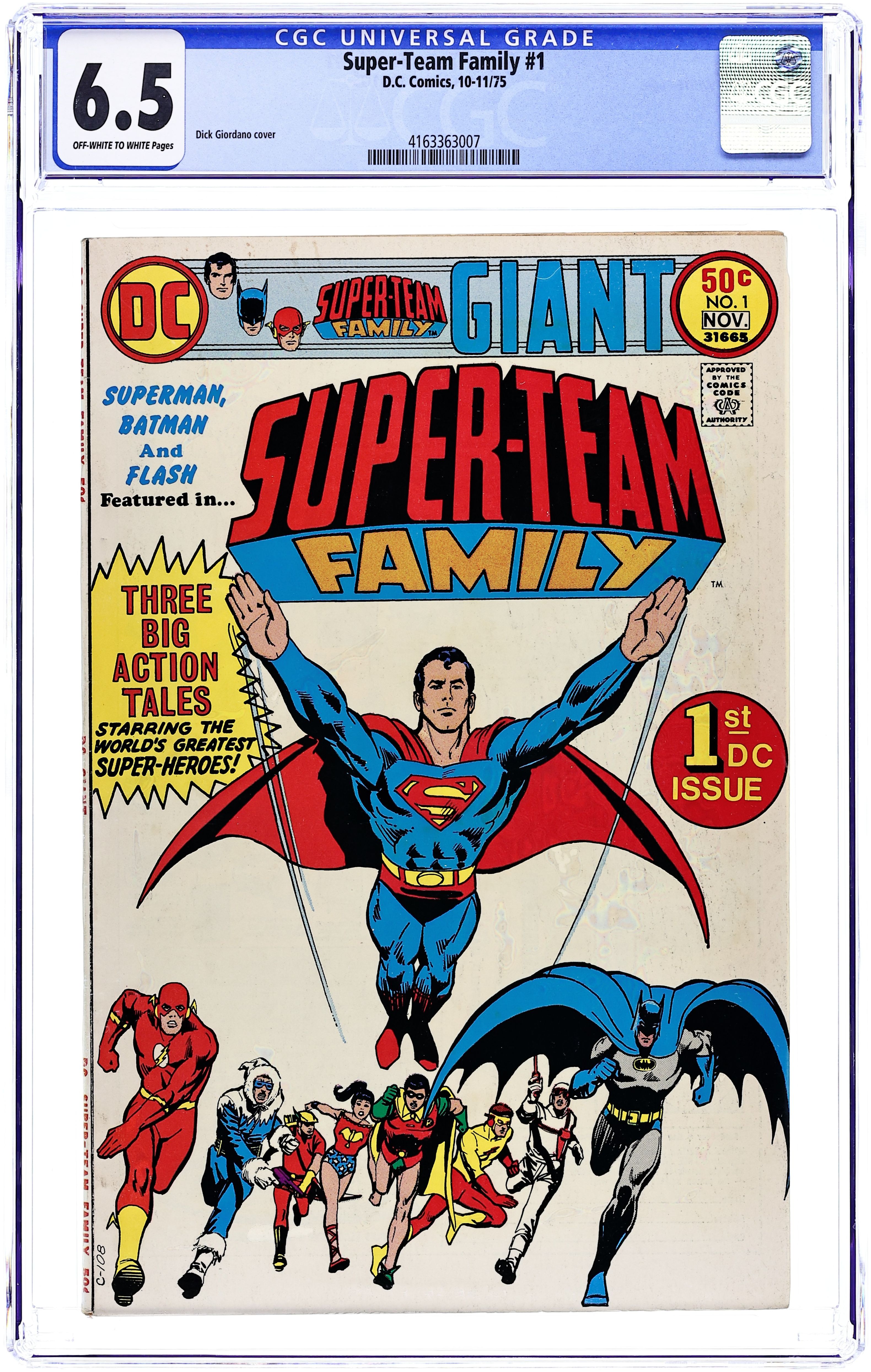 Cover art by Dick Giordano. The Superman-Batman Revenge Squads, script by Leo Dorfman, art by Neal Adams; Once each year Superman and Jimmy Olsen bet their crime-fighting skills against Batman and Robin; But as the two heroes participate in various contests of skill, their respective Revenge Squads try to sabotage their opponents. Stepping Stones for a Giant Killer!, script by Mike Friedrich, pencils by Gil Kane, inks by Wally Wood; The Titans battle Punch a teen-age would-be villain; Punch defeats two groups of Titans, but when they escape they are able to capture him with ease. Background on super-teams article by Paul Levitz. Tempting Target for the Temperature Twins starring Flash, Captain Cold and Heat Wave, script by Gardner Fox, pencils by Carmine Infantino, inks by Joe Giella. Minerva Menace! Hostess Twinkies ad starring Shazam, pencils by Curt Swan, inks by Vince Colletta. 68 pgs. $0.50. Cover price $0.50.