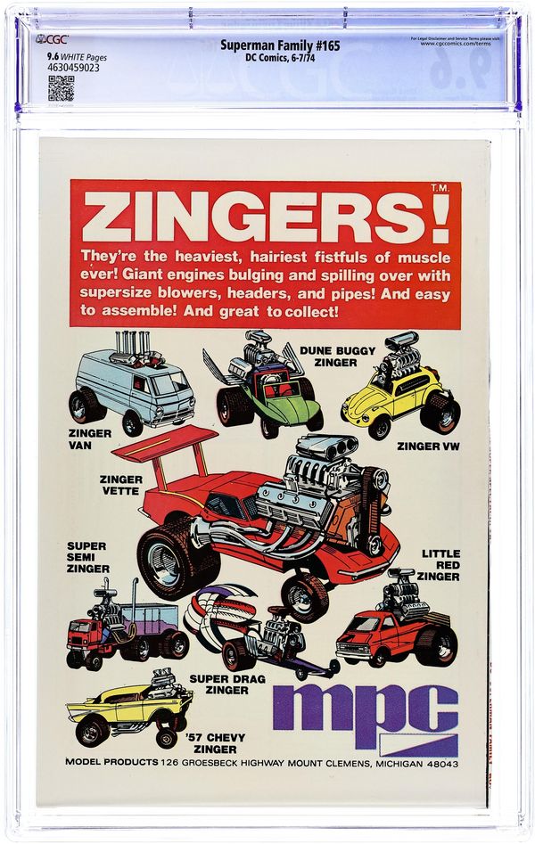 Cover art by Kurt Schaffenberger. Batman and The Mummy Hostess Twinkee ad. The Kid Who Adopted Jimmy Olsen, script by Leo Dorfman, art by Kurt Schaffenberger; A small child is left in Jimmy's care; This child has magical powers that help Jimmy capture the Rip-Off Gang. Both Feet in the Grave starring Jimmy Olsen, script by Leo Dorfman, art by Kurt Schaffenberger. The Green Sun Supergirl!, script by Otto Binder, art by Jim Mooney. The "Superman-Lois" Hit Record!, script by Jerry Siegel, pencils by Curt Swan, inks by George Klein and Kurt Schaffenberger (Lois figures). The Invulnerable Imp! starring Mr. Mxyzptlk, script by Edmond Hamilton and Cary Bates (idea), art by George Papp. Cover price $0.50.