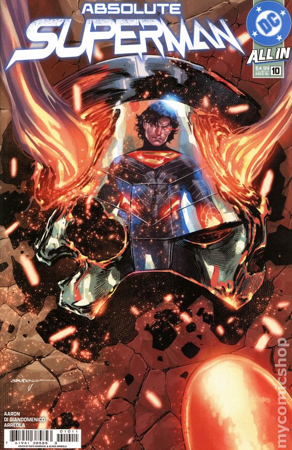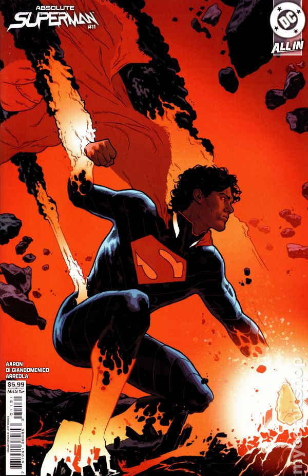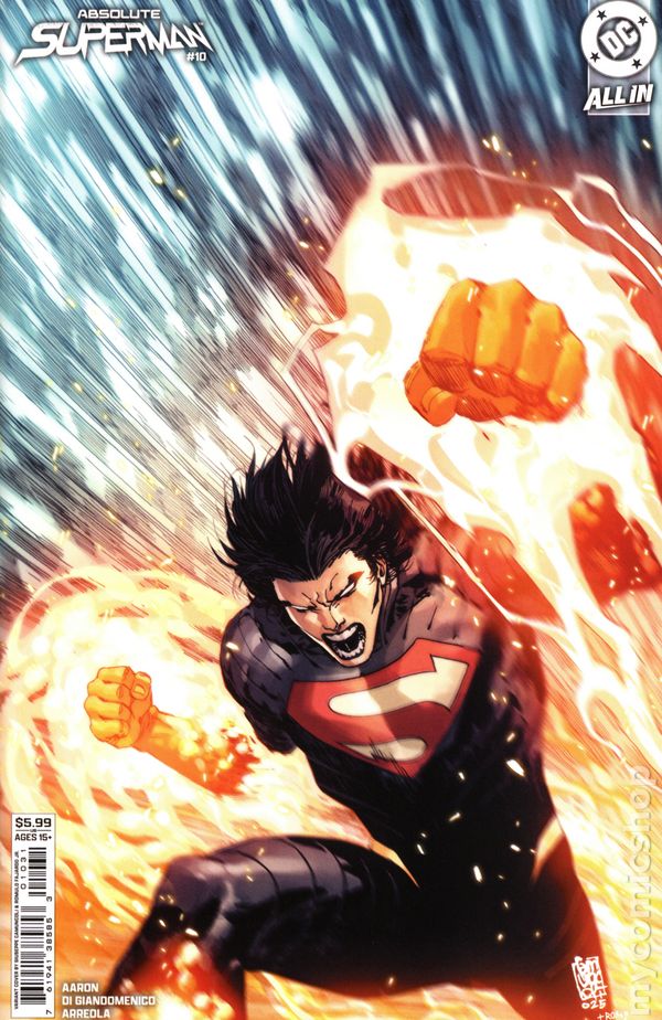 Written by Jason Aaron. Art by Rafa Sandoval. Cover by Rafa Sandoval. THE SECOND ARC OF ABSOLUTE SUPERMAN BEGINS HERE! The next big arc of this red-hot series begins here, as Superman finds himself caught between the opposing forces of the nefarious Lazarus Corp and the mysterious Omega Men. But Kal-El just wants to be left alone in the only place on this planet where he's ever felt safe. A place called Smallville. 28 pages, full color. Rated T+ Cover price $4.99.