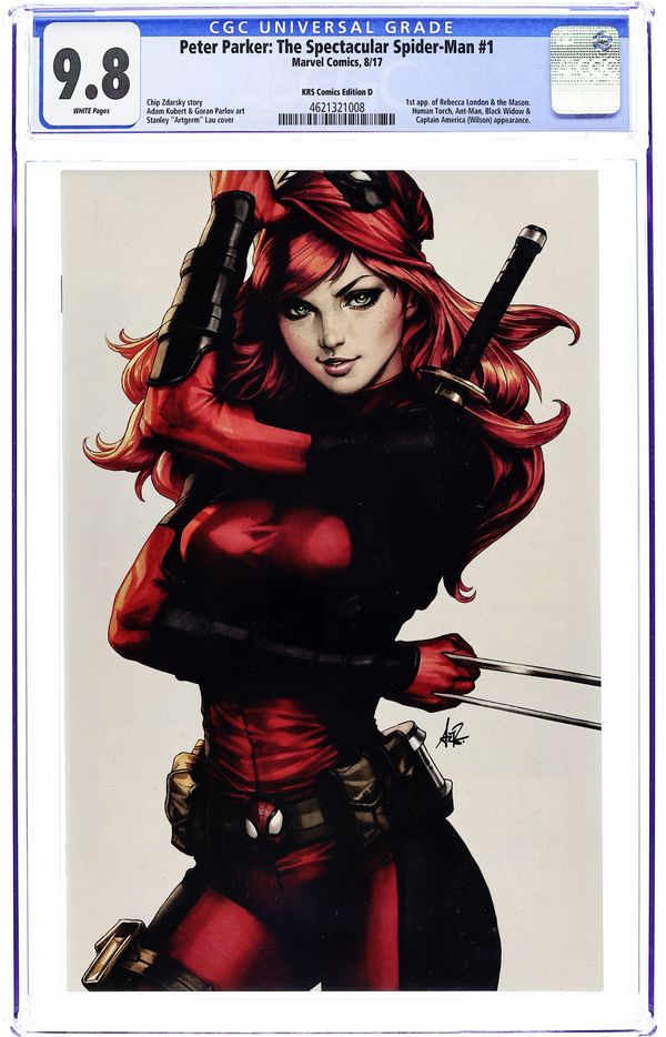 KRS Retailer Exclusive Variant. Written by Chip Zdarsky. Art by Adam Kubert. Cover by Stanley "Artgerm" Lau. SPIDER-MAN RETURNS TO THE FRIENDLY NEIGHBORHOOD! The webslinging, wallcrawling wonder returns to New York City in the all-new PETER PARKER: THE SPECTACULAR SPIDER-MAN. A companion series to the best-selling Amazing Spider-Man series, Peter Parker is going back-to-basics for big heroics in the Big Apple. Featuring adversaries old and new, be there as Spider-Man returns to his friendly neighborhood for his never ending battle against crime and the dreaded 'Parker Luck'. 36 pages, full color. Rated T Cover price $4.99.