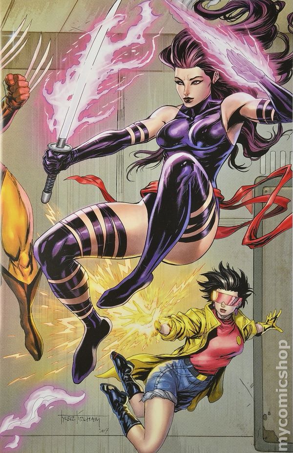 Comics Illuminati (Unknown Comic Books, Comic Traders, and Sleeping Giant) Convention Exclusive "Psylocke" Edition Virgin Cover by Tyler Kirkham. Written by Gail Simone. Art by Javier Garron. It's BACK TO SCHOOL for four young mutants... ...But is a rural school in Louisiana READY for this crew? Bullies, terrible lunches and classroom flirting abound...but IS one of the student body the prophesied ENDLING, who will be the last member of mutantkind? Plus - Jubilee undertakes a fateful solo mission! 32 pages, full color. Rated T+