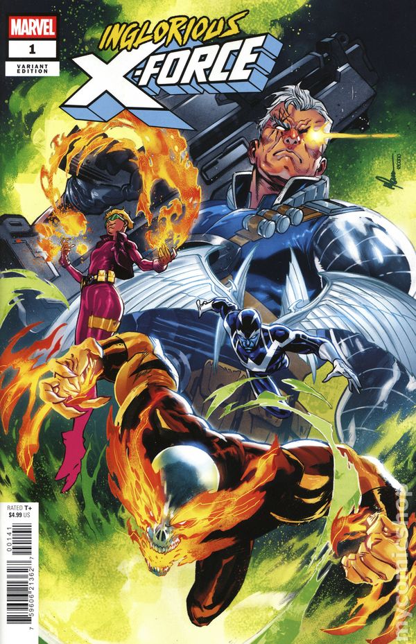 Limited 1 for 100 Retailer Incentive Variant Cover.(W) Tim Seeley; Jordan Blum (A) Michael Sta. Maria (CA) Francesco Manna INGLORIOUS VENGEANCE! CABLE returns from the future with a handful of clues…and gaping holes in his memory. An assassination is at hand, and it's up to HELLVERINE, ARCHANGEL and his former teammate BOOM-BOOM to follow Cable's lead into the fire. But who are they after, and what secret does Cable's faulty memory hide? Be here for the ground floor of the mystery and strap in for the most extreme thrill ride in X-dom, as an all-new X-FORCE blazes into battle! 32 pages, full color, rated T+. Cover price $4.99.