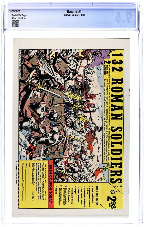 Starts Jan 26 Error version with pages 24 & 25 printed in black and white. Dazzler origin in "So Bright This Star." Script by Tom DeFalco, pencils by John Romite Jr., inks by Alfredo Alcala. Guest appearances by Spider-Man, the X-Men (Storm, Wolverine, Colossus, Nightcrawler, and Sprite), the Avengers (Hawkeye, the Beast, Iron Man, the Wasp, and Captain America), and the Enchantress. This issue was not sold on newsstands, but available only from direst-sale outlets. Bob Larkin painted cover. Cover price $0.50.