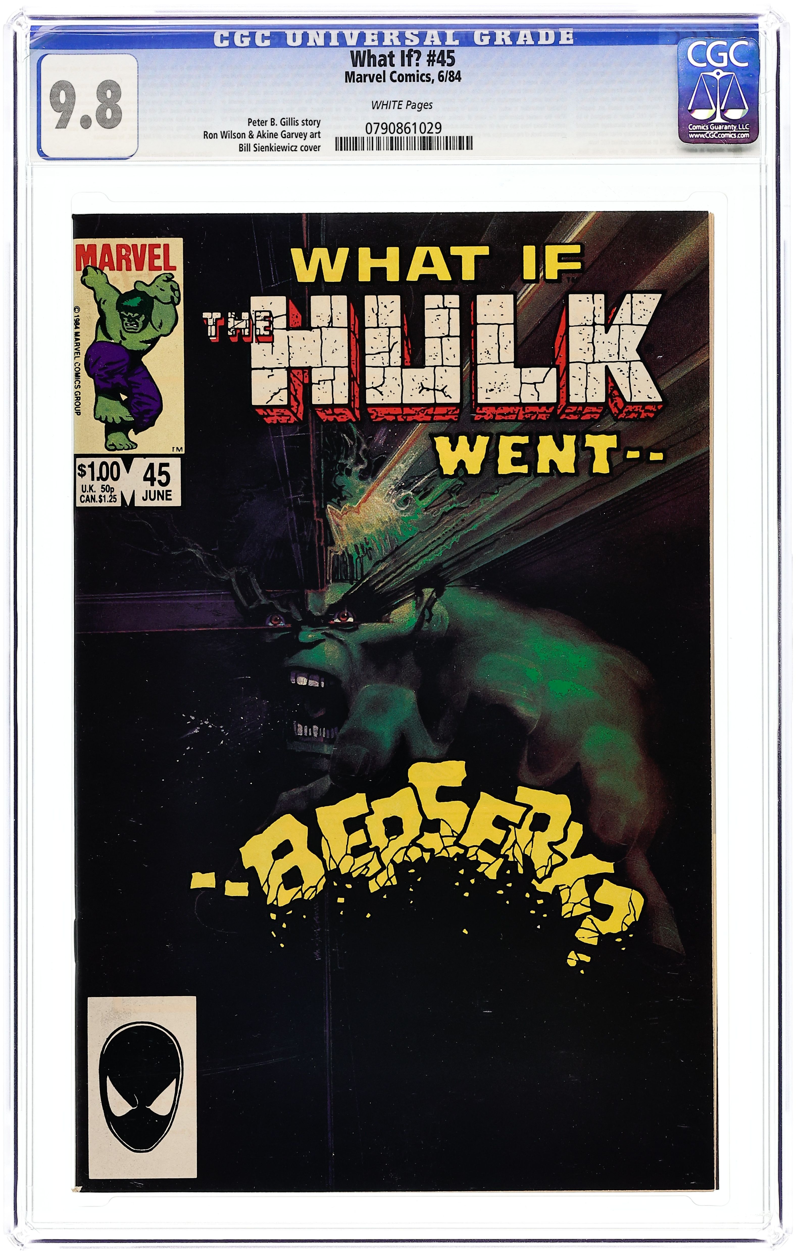 "What If the Hulk Went Berserk?!" Script by Peter Gillis, pencils by Ron Wilson, inks by Ian Akin and Brian Garvey. Isn't the Hulk always going berserk? Well, in this issue, he goes really, really berserk, taking on the Fantastic Four, Iron Man, and Thor! Bill Sienkiewicz cover. 52 pgs. Cover price $1.00.
