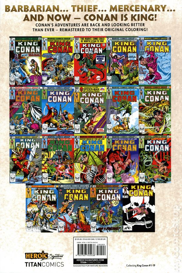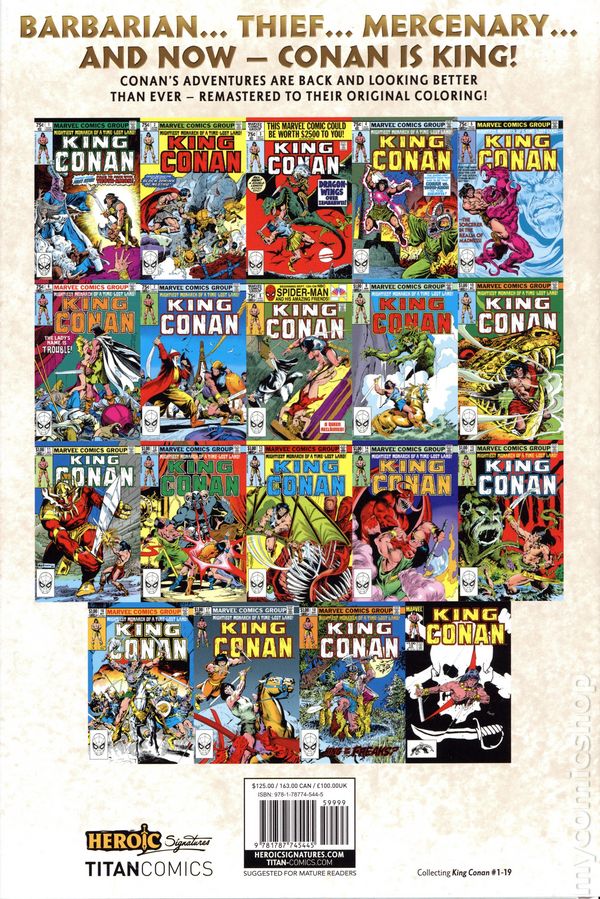 A new era of begins in adventures set after Conan has deposed the tyrant Numedides to become ruler of Aquilonia. But Conan on the throne is still Conan. The savage action that made him a comic book legend fills page after page while palace intrigue adds a new level of drama with Queen Zenobia and heir to the throne Prince Conn taking prominent roles. Old nemeses like Thoth-Amon return, while mystical prophecy ties Conan to the first king of the realm.