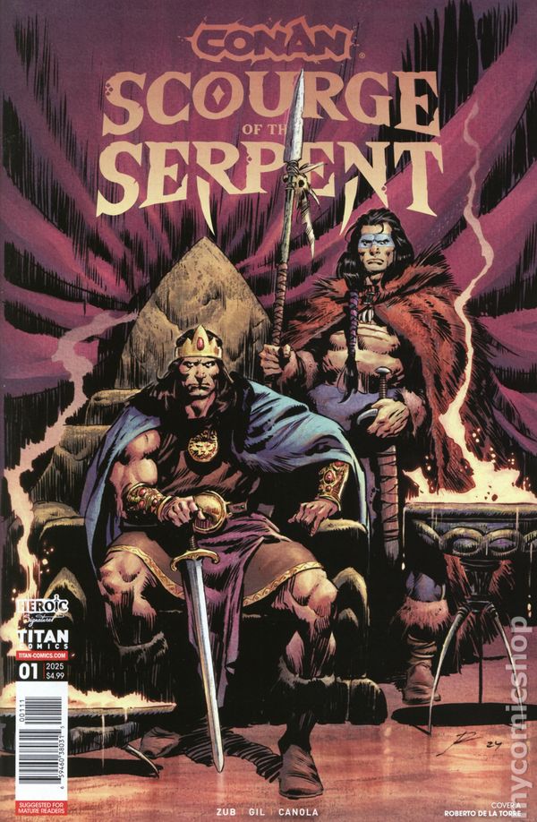 Written by Jim Zub. Art by Ivan Gil. Cover by Roberto de la Torre. SPINNING OUT OF THE PAGES OF THE FREE COMIC BOOK DAY CONAN SPECIAL! WRITTEN BY MODERN CONAN GREAT JIM ZUB! CONAN OF CIMMERIA has encountered Stygian sorcery and snake-sent creatures many times in his grand adventures, but he has never faced the true unspeakable power of SET...until NOW. The serpent god's influence coils around the Hyborian Age and every other age linked to it. Three stunning supernatural stories will weave together to answer a chilling question of past and present - What is Set's grand plan for humanity and, now that it's begun, can it be stopped? 28 pages, full color. Mature Readers Cover price $4.99.