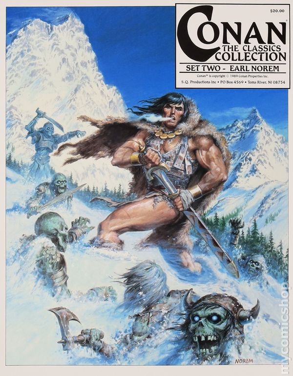Conan Classics Collection Portfolio Set 9, 1991. One plate each by John Buscema, Joe Jusko, Howard Chaykin, Dan Adkins, Frank Brunner and Clyde Caldwell. Limited to 2000 copies and numbered. 11-in.x 14-in., 6 plates, full color. Cover price $25.00.