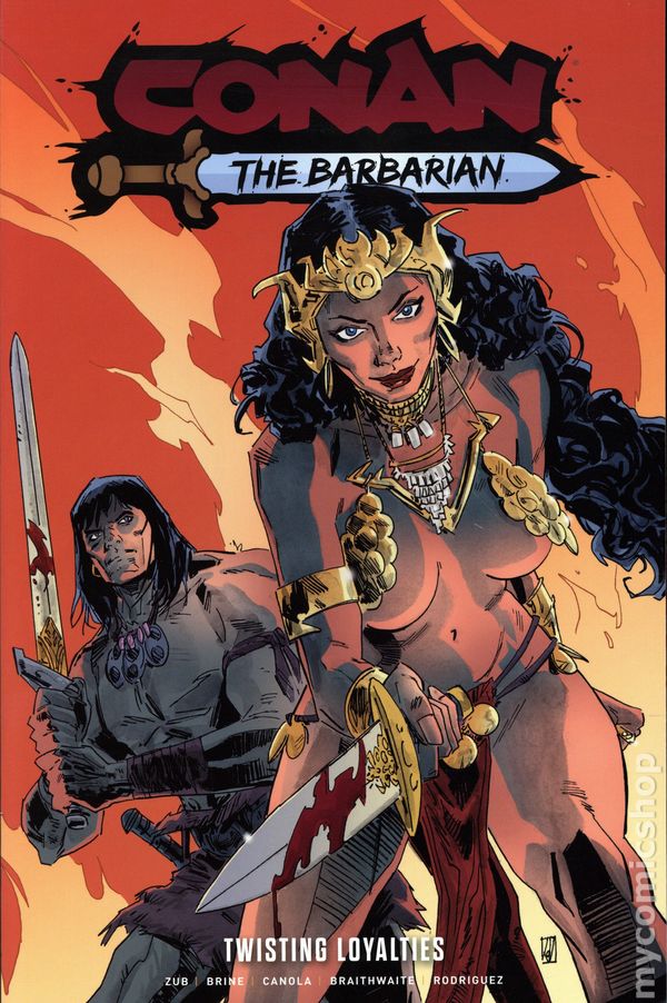 Volume 5 - 1st printing. "Twisting Loyalties!" Collects Conan the Barbarian (2023 Titan) #17-20. Written by Jim Zub. Art by Danica Brine and Doug Braithwaite. Cover by Roberto De La Torre. WINNER OF 'BEST WRITER' TRIPWIRE 2024 AWARDS! Conan the Cimmerian and Bêlit, Pirate Queen of the Black Coast, are in their prime, enjoying a life of decadence and debauchery, but a flagrant flash of wealth brings unwelcome attention from thieves with a taste for danger and agents from Stygia on a dark mission for their serpent god! Softcover, 112 pages, full color. Mature Readers Cover price $17.99.