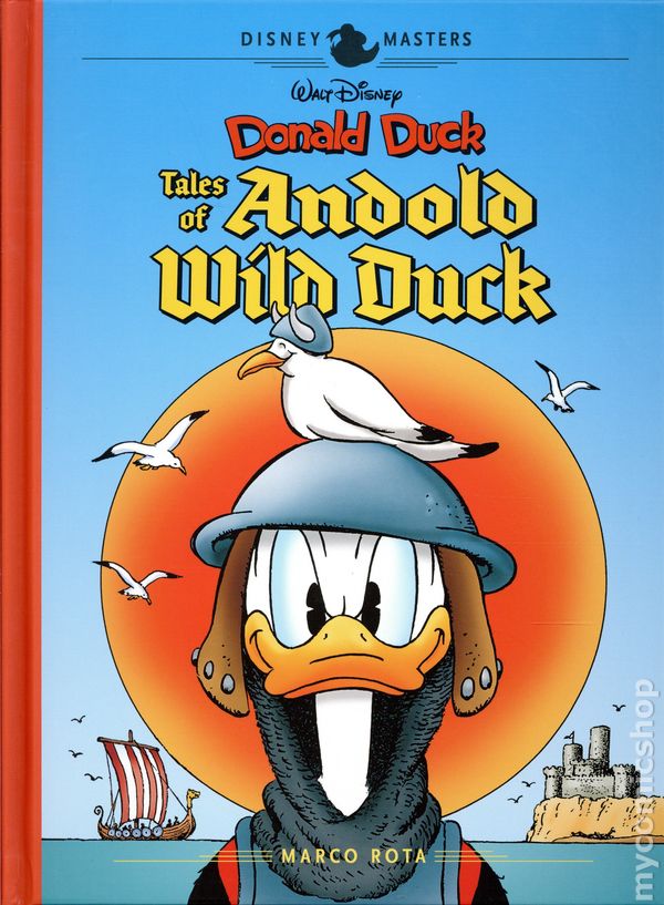 1st printing. Written by Marco Rota. Art by Marco Rota and Don Rosa. Cover by Marco Rota. Translation and Dialogue by David Gerstein, Gary Leach, Donald D. Markstein, and Thad Komorowski. Its Donald Ducks fierce ancestor—played by Donald himself—versus evil medievals in a much-requested miniseries! When Viking raids capture half of Scotland, its up to Commander Andold Wild Duck Temerary, his super-strong knightly pal Little Bo, and his brainy fiancée Lady Aydis to keep the peace. But with cursed runestones, lurking longboats, and barbarians at the gates, our heroes better grab their swords and shields! Along with four awesome Andold epics—some new to North America!—this Viking-size collection includes modern-day Donald and Uncle Scrooge thrills and spills, including manic McDuck treasure hunts and Commuter Crisis… the tale of Duckburgs most ridiculous rush hour! Hardcover, 8-in.x 11-in., 200 pages, full color. All Ages Cover price $34.99.
