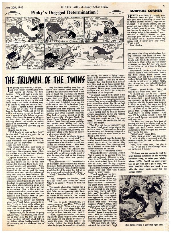 June 20, 1942. Weekly magazine published every Friday in London. Features comic strips, text stories, jokes, articles, and activities. 10 3/4-in. x 15-in., 8 pages, PC/BW.