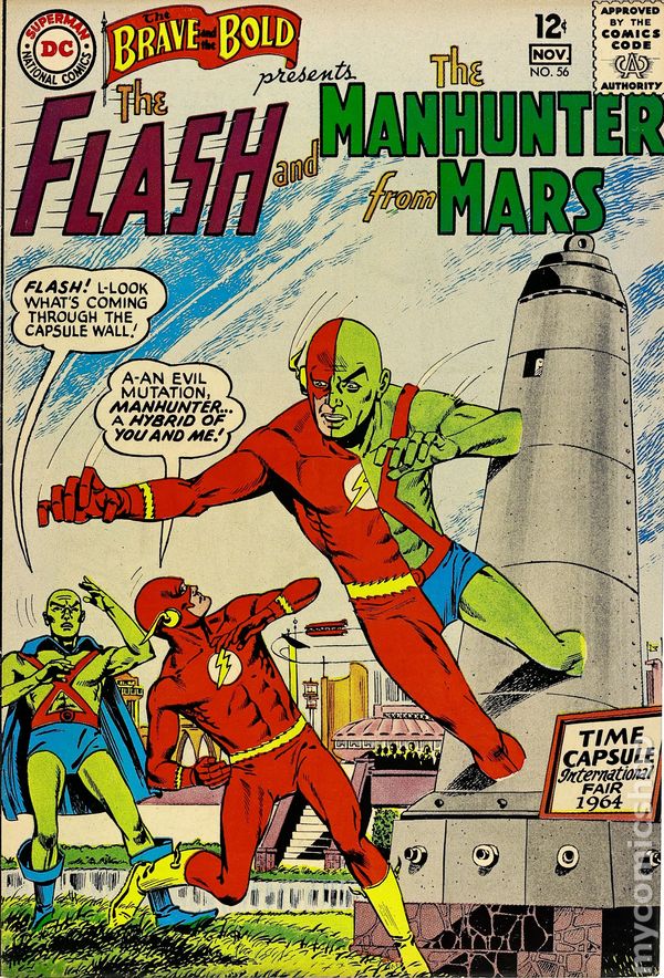 Cover by Bernard Baily. Smoking Is for Squares! public service announcement, script by Jack Schiff, art by Sheldon Moldoff. "Raid of the Mutant Marauders," script by Bob Haney, art by Bernard Baily; An android is created on the planet Argon with all the powers of the Justice League members, who is able to utilize the powers of two members at a time, and correspondingly takes a half-and-half appearance of those heroes (i.e., half-Flash / half-J'onn J'onzz); But when he falls in love with that planet's queen, is rejected, and is rocketed to Earth, the android goes on a rampage that even the Flash and the Martian Manhunter seem unable to halt. 36 Pages, Full Color. Cover price $0.12.