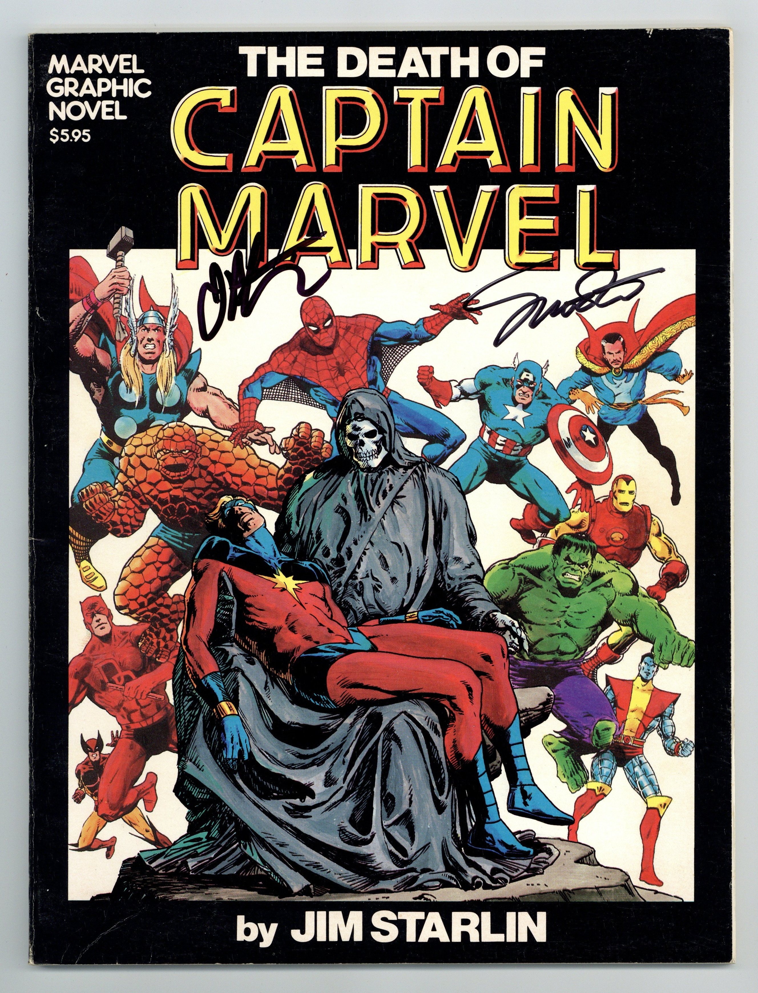 Tags: Marvel Graphic Novel Series (1982-1992) (part 1), Avengers, Daredevil, Fantastic Four, Hulk, Spider-Man, X-MenDeath of Captain Marvel GN (1982 Marvel Graphic Novel) 1-REP VG+ 4.5