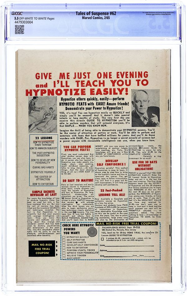 Cover pencils by Jack Kirby, inks by Paul Reinman. First appearance of the Black Widow in "The Crimson Dynamo Strikes Again!", script by Stan Lee (plot) and Don Rico (as N. Korok), art by Don Heck; The Black Widow and Boris are sent to America to kill Anton Vanko, the Crimson Dynamo, for defecting to America; They are also tasked with killing both Iron Man and Tony Stark. The first half of "The Magician" text story. "The Seance!", script by Stan Lee (plot) and Larry Lieber, pencils by Larry Lieber, inks by Chic Stone; A fake medium uses special effects to simulate supernatural powers, but he is taken into the spirit world by real ghosts as punishment. "The Failure!", script by Stan Lee (plot) and Larry Lieber (script), pencils by Larry Lieber, inks by Paul Reinman; The Earth of the future is overwhelmingly materialistic, except for one idealistic young man and his lover; They are abducted by aliens, who have determined that he is the best suited to be absolute ruler of their empire. This issue includes a statement of ownership - average print run, 318,932; average paid circulation, 188,005. 36 pages, full color. Cover price $0.12.