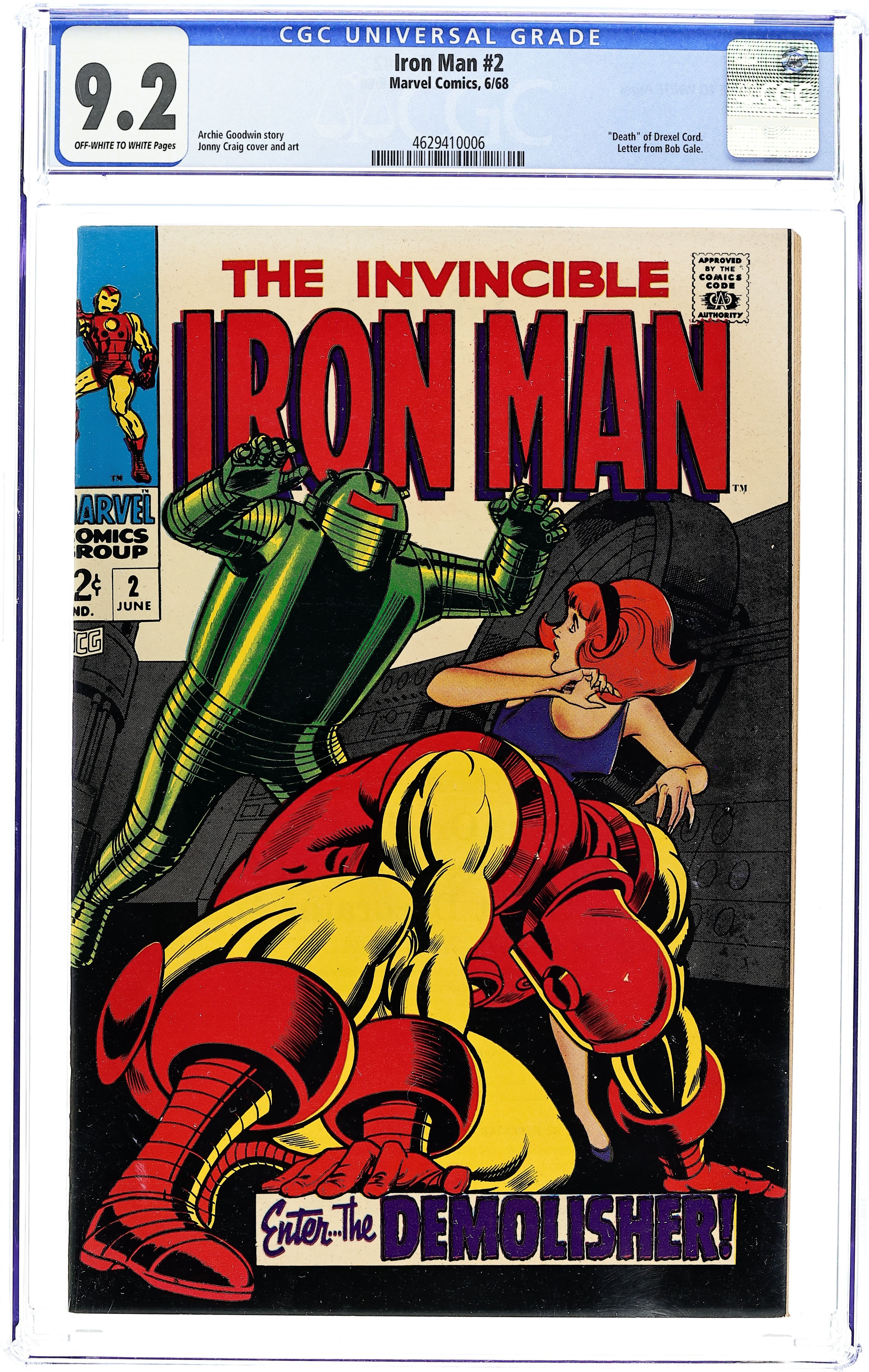 Cover by Johnny Craig. "The Day of the Demolisher," script by Archie Goodwin, art by Johnny Craig; One of Tony Starks many competitors seek to put an end to the Iron Man's fame; To prove that the Iron Man suit is nothing but a pile of mechanical junk, Drexel Cord will build a bigger and more destructive suit! Enter the Demolisher! Cont'd from AVENGERS #52. Letter from comics writer Bob Gale. 36 pgs., full color. $0.12. Cover price $0.12.