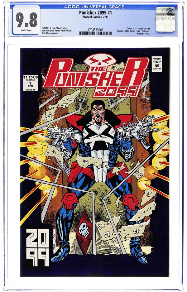 The Punisher of 2099 celebrates his 25th big issue! There's no stopping a Punisher-gone-crazy! After falling under the spell of a techno-assassin, the Punisher embarks on a frenzied carnage spree. Written by Pat Mills and Tony Skinner. Art by Simon Coleby, Luke Ross, Tom Morgan, Scott Koblish and Keith Williams. Cover price $2.25.