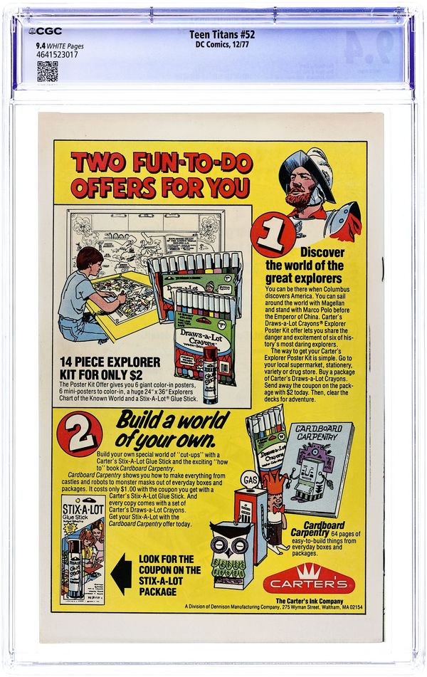 Written by Bob Rozakis. Art by Jose Delbo and Vince Colletta. The Titans take on a gang on rocket powered skateboards. Ask the Answer Man column by Bob Rozakis. 36 Pages, Full Color. Cover price $0.35.