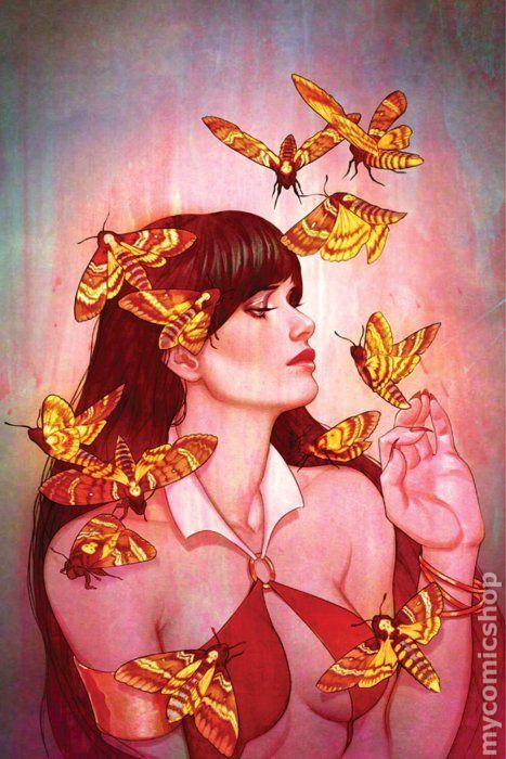 Written by Nancy A. Collins. Art by Patrick Berkenkotter. Cover by Jenny Frison. In a desperate attempt to fight Lady Umbra's growing control over her mind and body, Vampirella and her unlikely new ally, Lord Drago, take a jaunt to the Mediterranean. There, on the Greek island of Lamos, famous for its unspoiled beaches and friendly natives, they search for the most ancient species of vampire in the world: the dreaded lamia of legend. But can Vampirella locate and slay the seductive half-serpent before her heart falls into shadow? 32 pages, full color. Cover price $3.99.