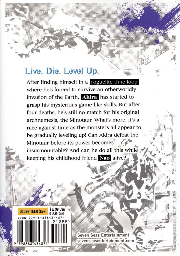 Volume 2 - 1st printing. Written by Shigeru Hajima. Art and cover by Tsubasa. Character Design by Ryuta Fuse. Translated by Jacqueline Fung. LIVE. DIE. LEVEL UP. After finding himself in a roguelite time loop where hes forced to survive an otherworldly invasion of the Earth, Akira has started to grasp his mysterious game-like skills. But after four deaths, hes still no match for his original archnemesis, the Minotaur. Whats more, its a race against time as the monsters all appear to be gradually leveling up! Can Akira defeat the Minotaur before its power becomes insurmountable? And can he do all this while keeping his childhood friend Nao alive? Softcover, 5-in. x 7-in., 184 pages, B&W. Rated T+ Cover price $13.99.