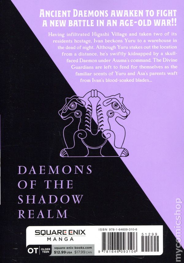 Volume 6 - 2nd and later printings. Story and art by Hiromu Arakawa. Translated by Amanda Haley. Having infiltrated Higashi Village and taken two of its residents hostage, Ivan beckons Yuru to a warehouse in the dead of night. Although Yuru stakes out the location from a distance, he's swiftly kidnapped by a skull-faced Daemon under Asuma's command. The Divine Guardians are left to fend for themselves as the familiar scents of Yuru and Asa's parents waft from Ivan's blood-soaked blades... Softcover, 5-in.x 7-in., 176 pages, B&W. Older Teen Cover price $12.99.