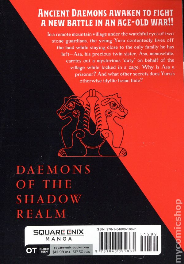 Volume 1 - 2nd and later printings. Story and art by Hiromu Arakawa. Translated by Amanda Haley. Hiromu Arakawa, award-winning manga creator of the best-selling smash hit Fullmetal Alchemist, draws readers into an intricate new web of magic, intrigue, and life-or-death stakes! Deep in the mountains, under the watchful eyes of two stone guardians, lies isolated Higashi Village. Unlike some of its residents, young Yuru is content to live out his days foraging and hunting in the nearby woods. But Yuru's idyllic life changes forever when Higashi Village comes under attack. Amid the chaos, the young man is whisked away and forbidden to return to the only home and family he's ever known. And to ensure his safety, the two statues who once stood guard over the village have joined the fight-the Divine Left and Right! After losing everything dear to him, will he be up to the task of unraveling a conspiracy tying him and his twin, Asa, to a prophecy that threatens the entire world? Softcover, 5-in.x 7-in., 208 pages, B&W. Older Teen Cover price $12.99.