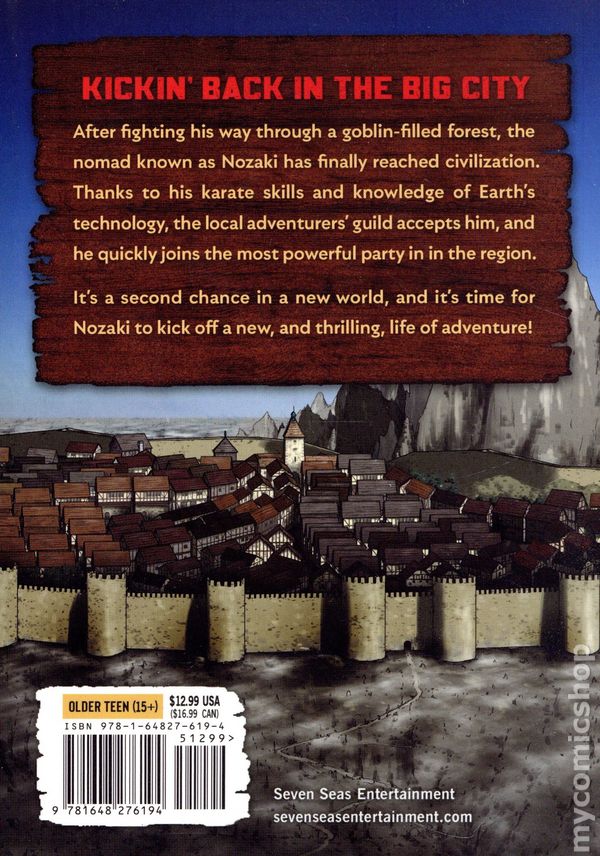 Volume 7 - 1st printing. Written by Yazin. Art and cover by Takahito Kobayashi. Translated by M. Fulcrum. When 34-year-old Nozaki Hitoshi is hit by a truck, he is sent to a fantasy world by a dismissive god and dropped into a harsh wilderness without even the clothes on his back. His only salvation is a newly granted karate skill and his general survival instincts. Luckily, Hitoshi is up for the challenge; he'll weave clothes out of tree bark, test fruit for poison, and crawl through the mud to test his kicks and punches against goblins and other creatures. No matter how much he levels up in this world, he still longs to find other humans to share his solitude. Softcover, 5-in. x 7-in., 178 pages, B&W. Older Teen Cover price $12.99.