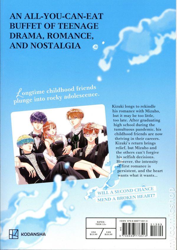 Volume 10 - 1st printing. Story and art by Haruka Mitsui. Translated by Melissa Chiam/amimaru. An irresistible shojo manga offering an all-you-can-eat-buffet of high school drama, adolescent crushes, and childhood nostalgia. Guaranteed to delight fans of popular romance comics like Komi Cant Communicate and Skip and Loafer. Kizuki longs to rekindle his romance with Mizuho, but it may be too little, too late. After graduating high school during the tumultuous pandemic, his childhood friends are now thriving in their careers. Kizukis return brings relief, but Mizuho and the others cant forgive his selfish decisions. However, the intensity of first romance is persistent, and the heart wants what it wants… Will a second chance mend a broken heart? An all-you-can-eat buffet of teenage drama, romance, and nostalgia. Softcover, 5-in. x 7-in., 160 pages, B&W. Cover price $13.99.