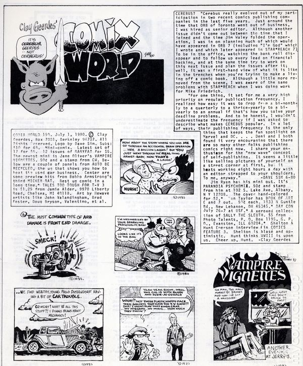 March 15, 1980. Newsletter by Clay Geerdes. Contains news of comix, artists of interest, and a general review of what was happening in the underground market. Doug Bryson art. 8 1/2-in. x 11-in., 2 pages, black and white.