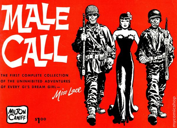 When World War II began, master cartoonist Milton Caniff created a newspaper strip for military newspapers only. Called MALE CALL, it featured GI's sweetheart, Miss Lace,. Circulated to 3,000 camp papers, it offered a breath of humor and hint of sex in a world at war.